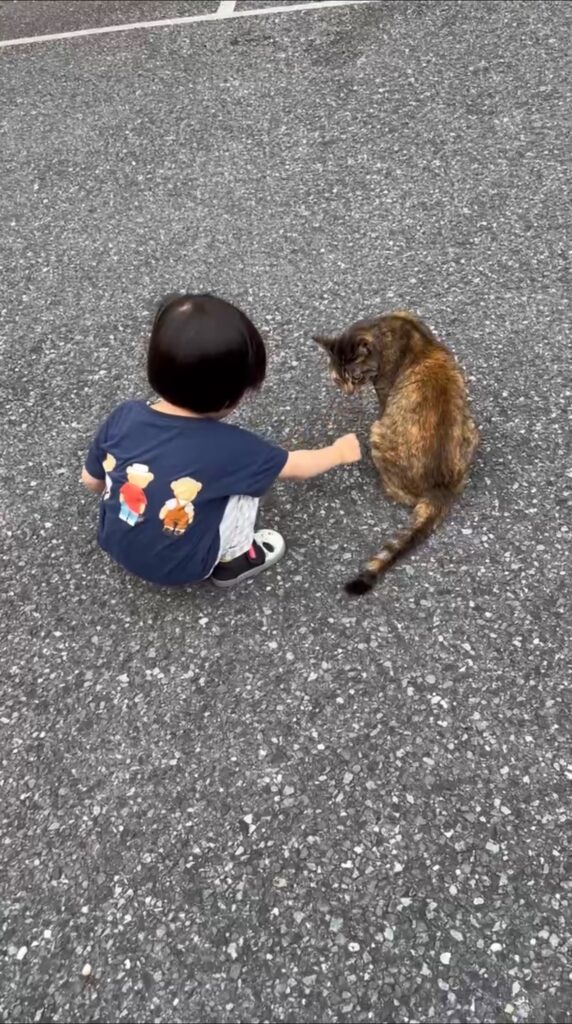 保育園の帰り道にいる猫ちゃんに挨拶して帰りたがります。