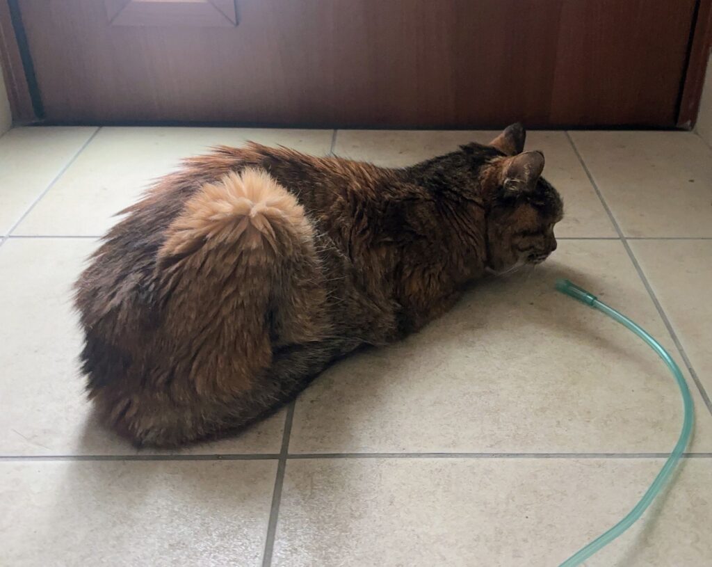 基本的に玄関暮らしになってしまったんですが、、こんな感じで、鼻の近くで吸わせたり、酸素を充満させた酸素ルームで過ごしてもらったりしています。