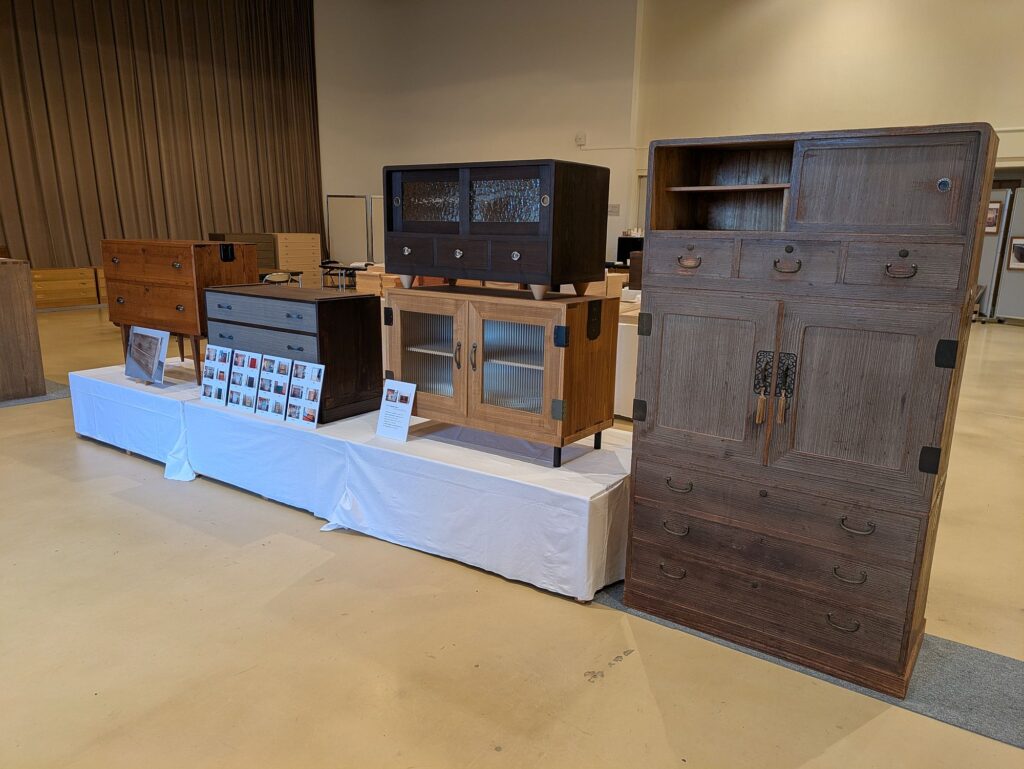 職人さんが1つ1つ作り上げた桐箪笥がずらっと展示されていました。