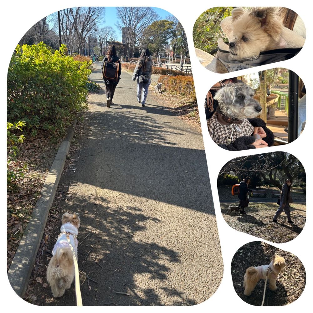 先日のよく晴れた日には、同期のわんこたちとお散歩を楽しみました。可愛かった~