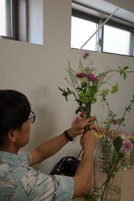 綺麗に束ねるには独特の持ち方をするのですが、力が入って指つりました。。花を折らぬよう気を遣うのが大変。